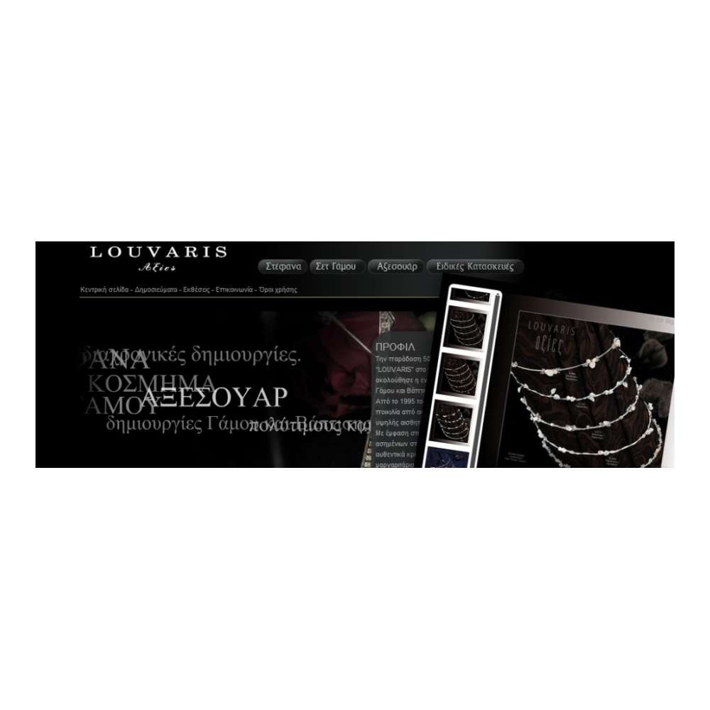 Με έμφαση στη δημιουργία χειροποίητων ασημένιων στεφάνων και υλικών, όπως αυθεντικά κρύσταλλα “SWAROVSKI”, γνήσια μαργαριτάρια, πολύτιμους και ημιπολύτιμους λίθους, το εργαστήριο “LOUVARIS” κατασκευάζει ποιοτικές και διαχρονικές δημιουργίες.
